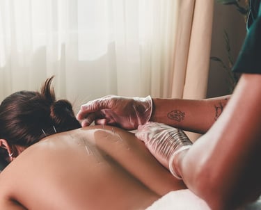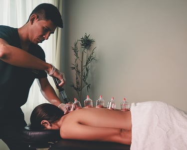 Aplicação de ventosas para melhorar a circulação, reduzir dores e acelerar a recuperação muscular.
